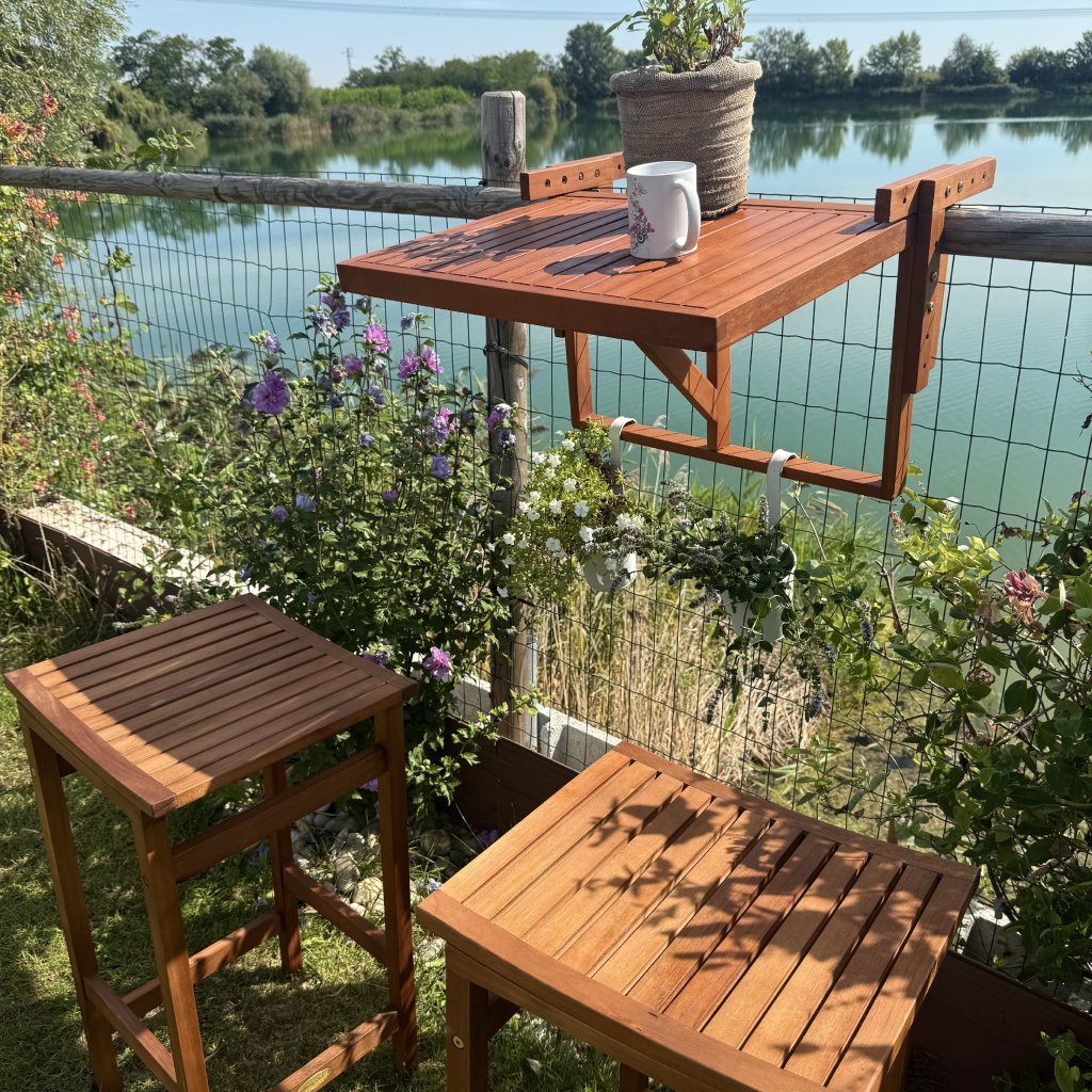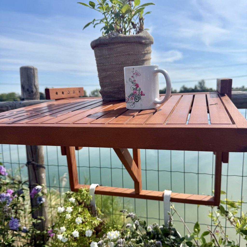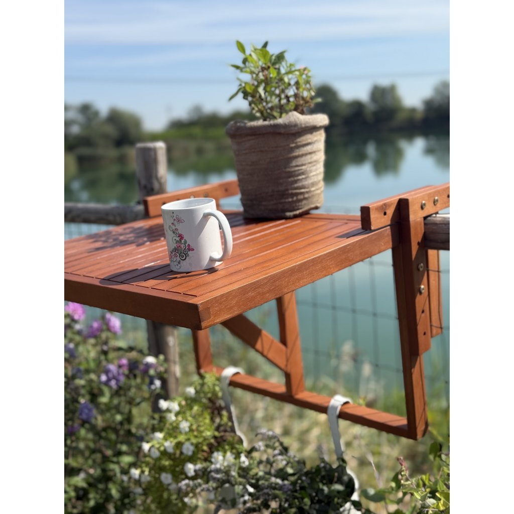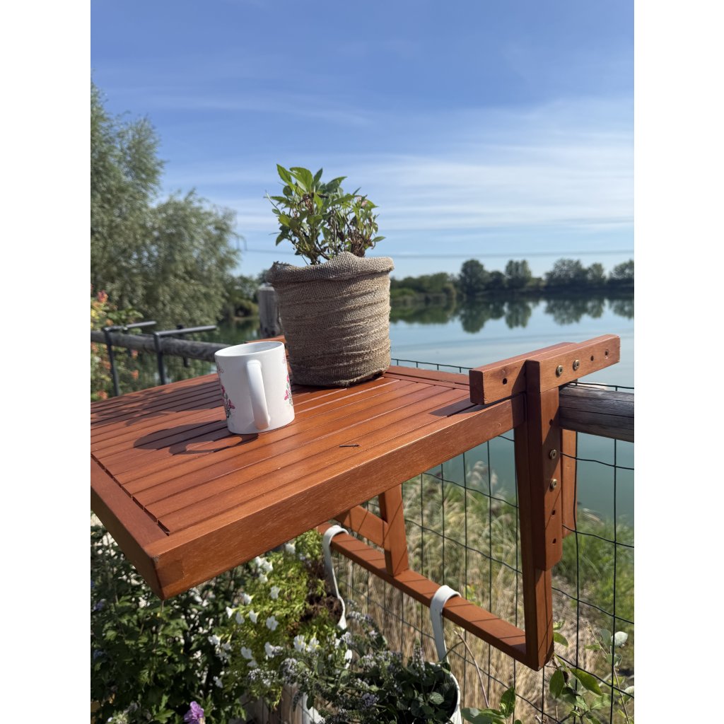 Balkónový závesný stôl ponúka šikovné riešenie na poskytnutie úložného priestoru na menších balkónoch. Na rozdiel od bežných stolov nemá nohy stola, ale je zavesený na zábradlí balkóna. To umožňuje maximálny priestor na nohy. Dosku stola je možné v prípade potreby sklopiť.