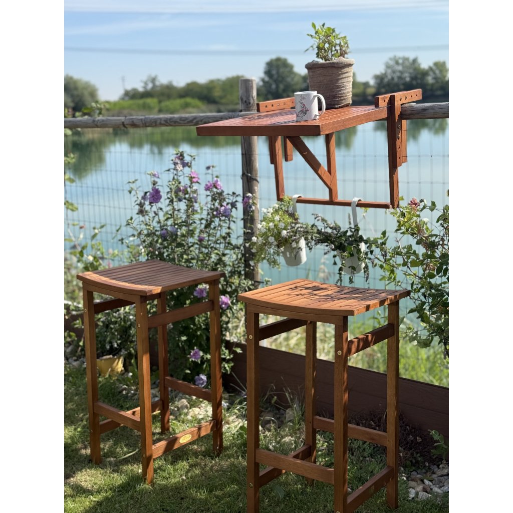 Oživia váš vonkajší bar alebo pult. Vďaka robustnej konštrukcii a prirodzenej kráse eukalyptového dreva ponúkajú prvotriedne a štýlové sedenie pre uvoľnené chvíle vonku. Atraktívny vzhľad a vysoká odolnosť z nich robia ideálnu voľbu na terasu, balkón či do záhrady.