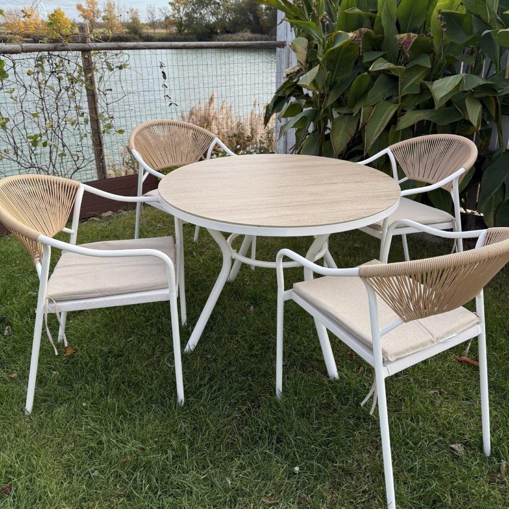 Záhradná jedálenská zostava Elvas pre 4 osoby s oceľovým rámom