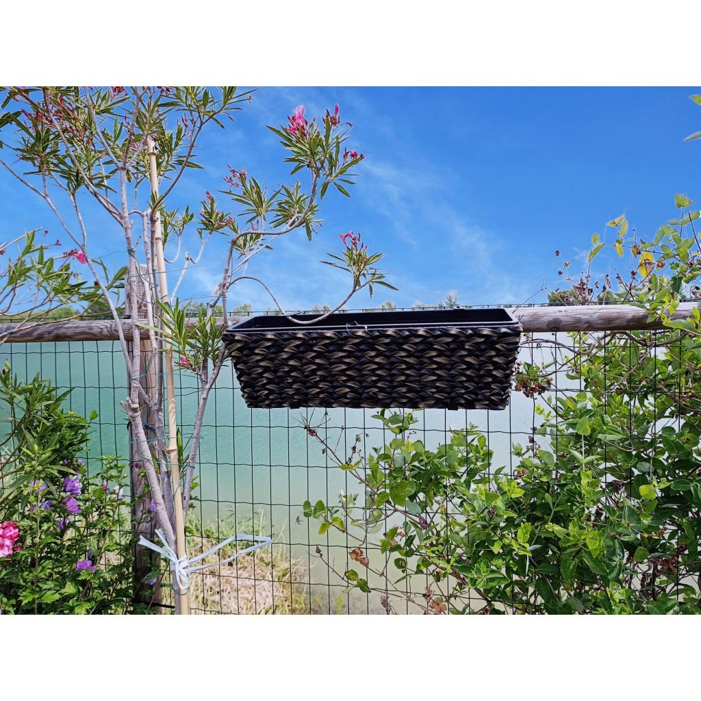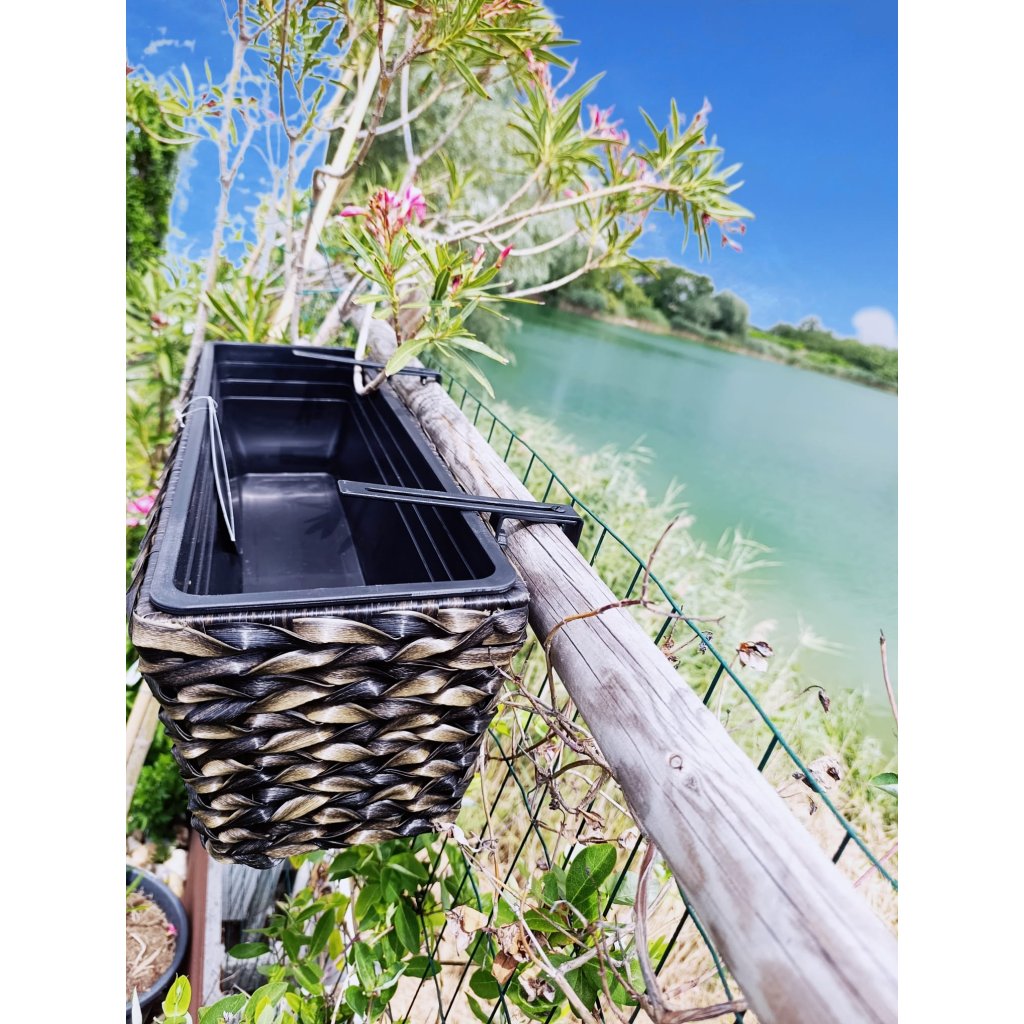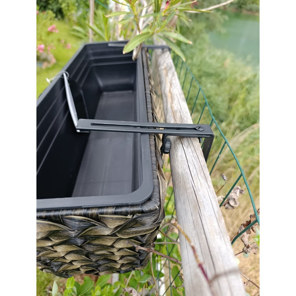 Kvetináč je vybavený dvoma nastaviteľnými konzolami, vďaka ktorým ho môžete zavesiť na balkón a vytvoriť tak nádhernú dekoráciu.