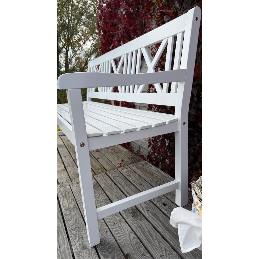 Drevený nábytok doporučujeme zakryť v zime pre dlhšiu životnosť. Ak je na lavičke stále voda, mierne ju nakloňte a nechajte vodu odtiecť.