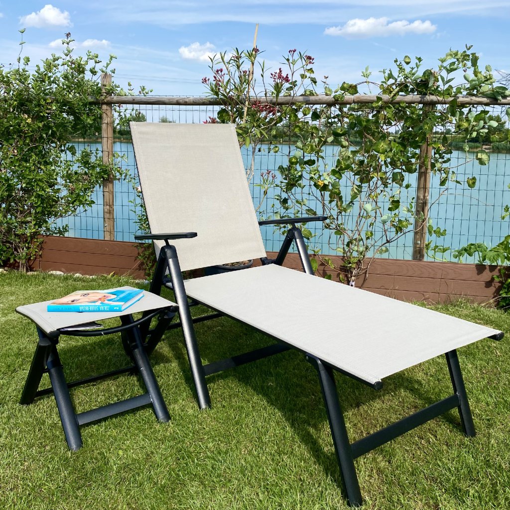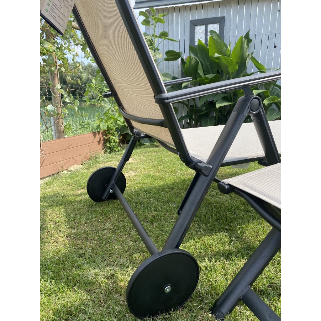 Záhradné skladacie lehátko polohovateľné s kolieskami Vanage