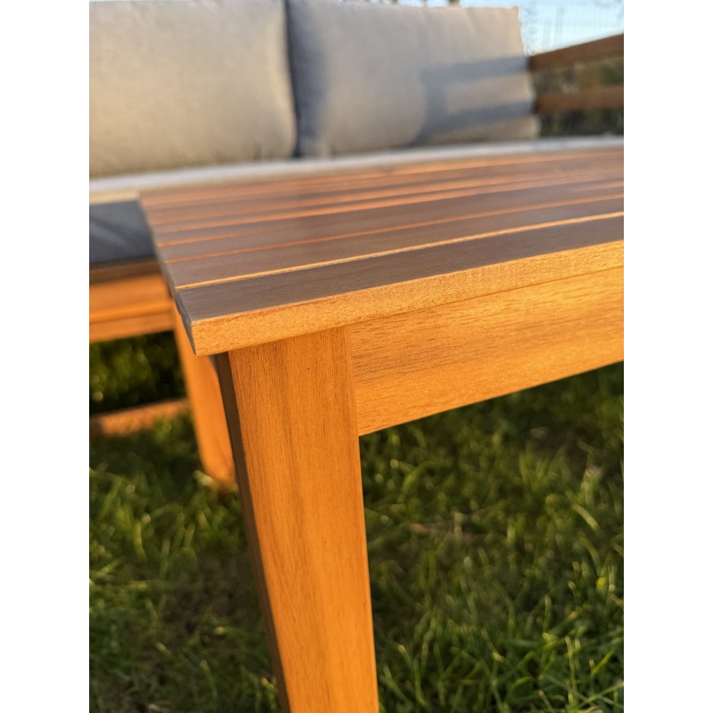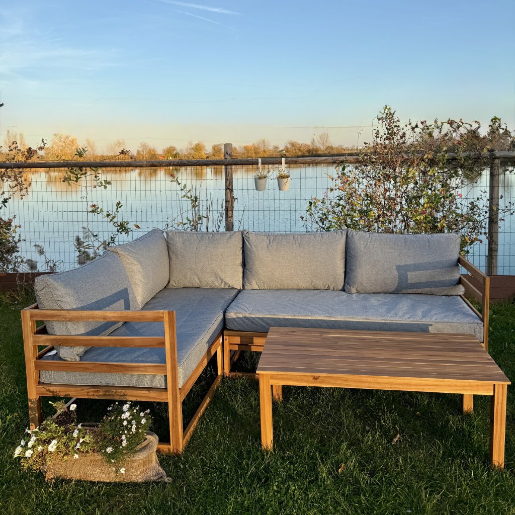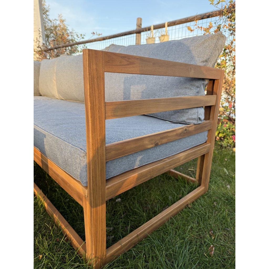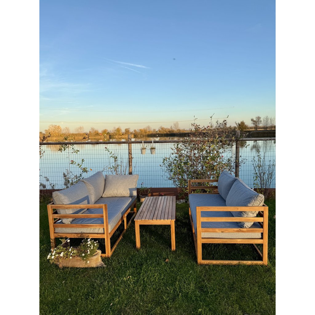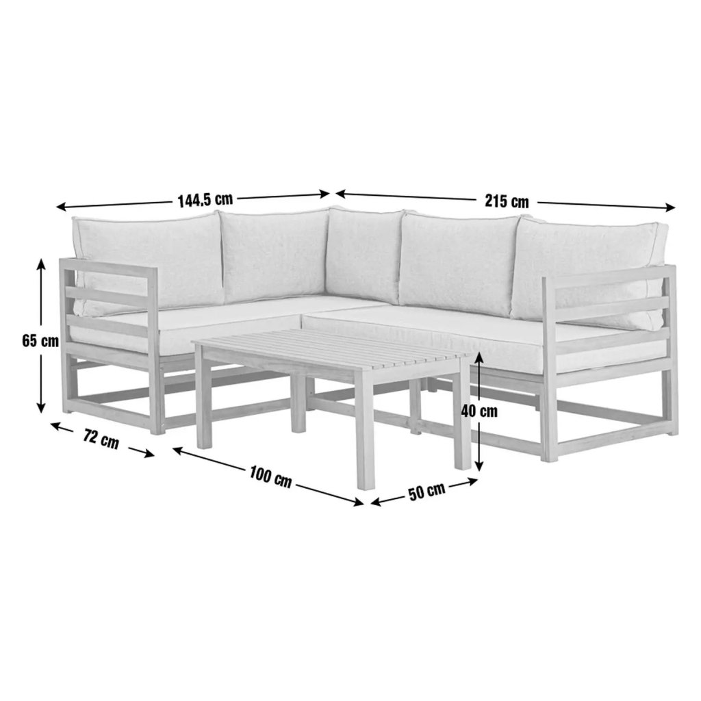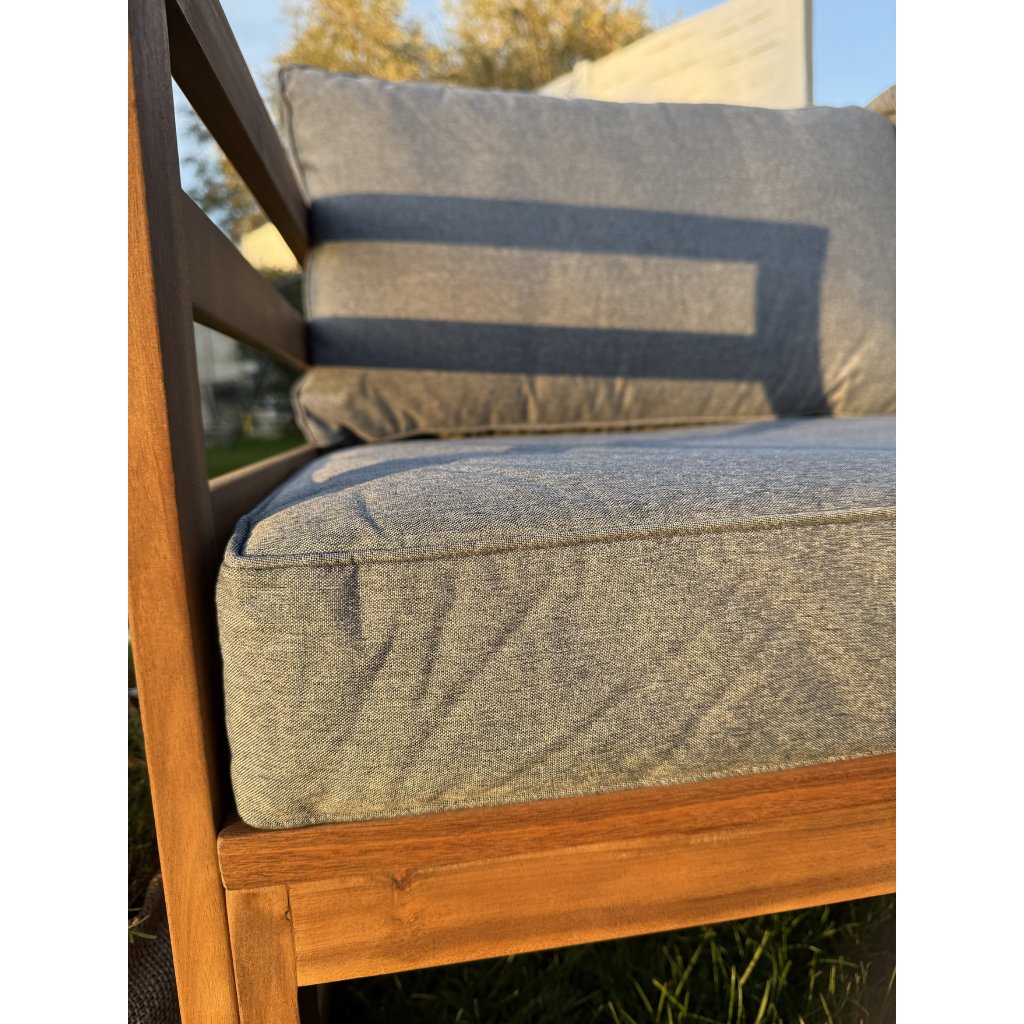 Objavte pohodlie a dizajn v jednom s drevenou záhradnou súpravou Evissa. Vyrobená z bieleného akáciového dreva, ponúka priestranné sedenie pre 4 osôb. Môžete ju usporiadať ako dve samostatné sedačky alebo jednu rohovú zostavu – ideálne pre útulný kútik či elegantnú zónu na relax. Mäkké, pevné sivé vankúše vás pozývajú ponoriť sa do pohodlia, zatiaľ čo stolík v rovnakom dizajne je pripravený na vaše obľúbené nápoje či dekorácie.