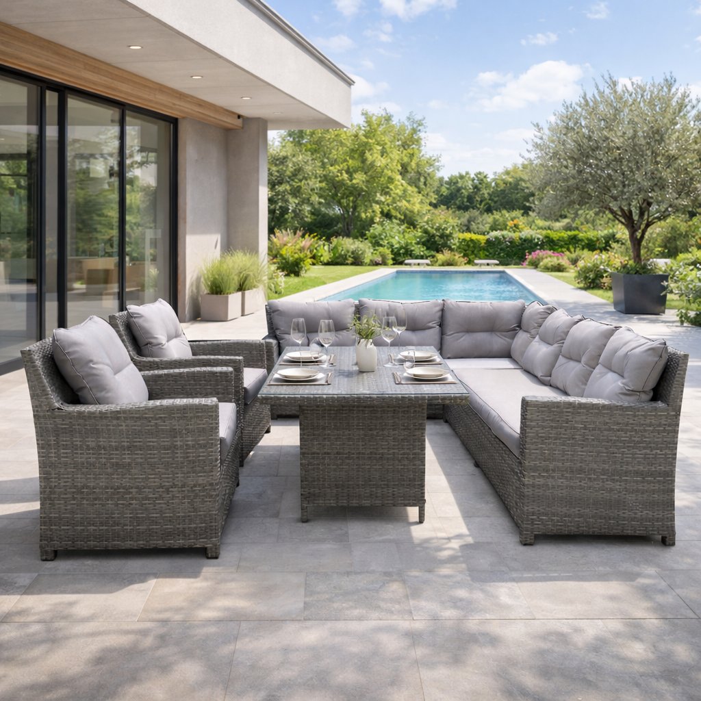 Záhradná ratanová sedačka James pre 8 osôb Pohodlné sedenie pre rodinu aj návštevu