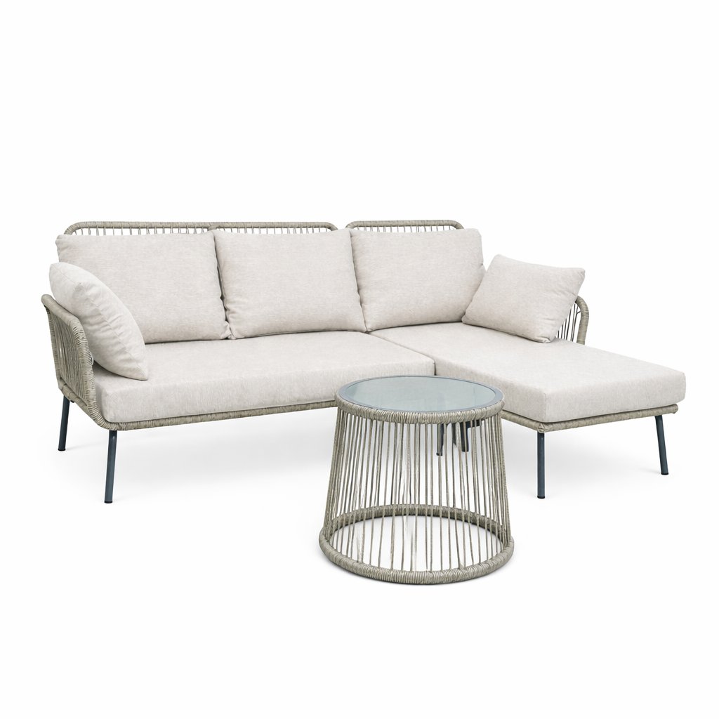 | Obsahuje | 2x sedačka, 1x stolík, podušky |
