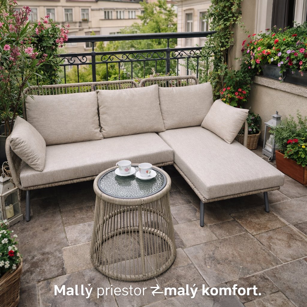 Záhradná rohová ratanová sedačka Jana 3-miestna so stolíkom
